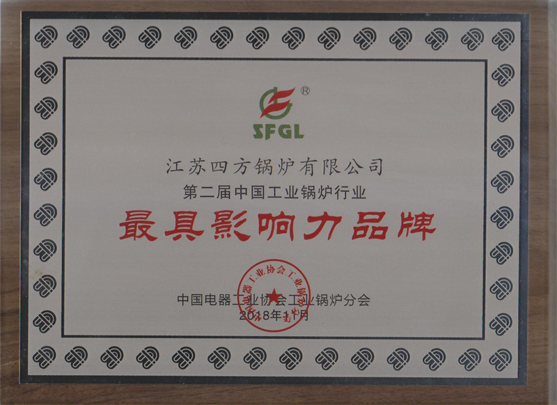 11月27日,在中国电器工业协会工业锅炉分会第七届第一次会员大会上,江苏四方锅炉有限公司荣获第二届中国工业锅炉行业“最具影响力品牌”称号。
