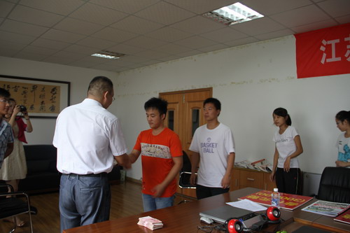 又逢大学开学时,情满贫困学子心。按照董事长例行工作安排,8月29日上午9时许,我公司筹备已久的2013’金秋助学捐赠仪式在二楼会议室隆重举行。上午10时许,在热烈的掌声中,受公司董事长委托,公司总经理叶枫分别向来自本镇苏家村的李岩等8个行政村的贫困大学新生每人发放了3000元的助学金。铜山区总工会、柳新镇党委、工会及团委负责人参加了捐款助学仪式。公司党支部书记、工会主席罗德玉主持了捐助仪式。