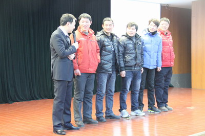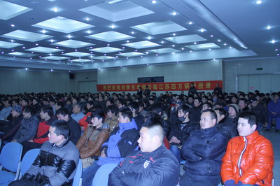 2月8日,按照公司2012年全员培训计划要求,公司邀请著名公众演说家、中国人民大学华商学院特邀讲师刘玉良老师,在徐州工业职业技术学院举办主题为“我在为谁工作”的专场大型特训营活动。公司生产一线的全体干部员工、质检、仓库以及其他部、室的部分干部员工400多人分乘七辆大巴,参加了当天的特训活动。公司总经理叶枫、副总经理张厚星、邓益忠等负责同志一同参加了全天活动。
