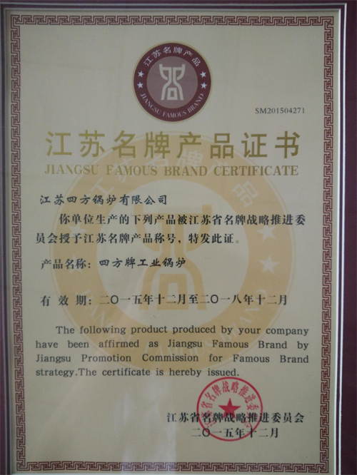 日前,徐州市质监局转发了江苏省质监局组织、江苏省名牌战略推进委员会办法的“江苏省名牌产品证书”。这是对我公司“四方牌”锅炉产品质量的再次肯定,对产品品牌的新一期褒扬。