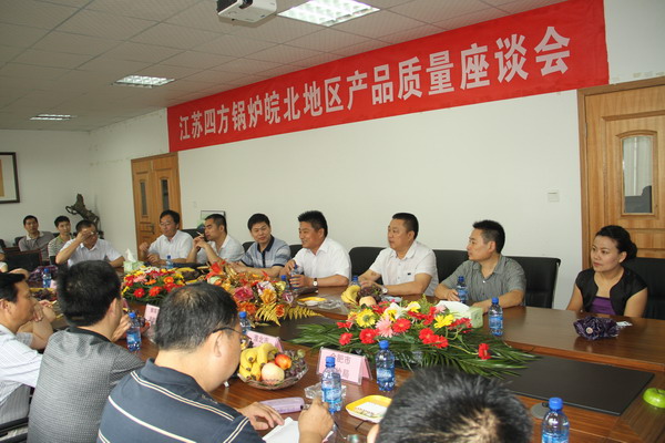 根据本次产品质量研讨活动计划安排,公司于6月29日晚在海天假日酒店隆重举办了欢迎宴会。次日上午,与会领导冒雨参观了我公司华润工业园区之后,在公司二楼会议室召开了产品质量研讨会。会上,徐州市质监局副局长姚加玉首先进行了热情洋溢的讲话;公司董事长段绪强向与会领导介绍了四方锅炉近年来的发展情况,汇报了牢固坚持以产品质量为中心,全员投入,多措并举,确保产品质量水平稳中有升的主要工作经验与体会,并就企业当前及下一步的发展规划进行了展望。与会的皖北地区受邀市质监局及特检分院领导纷纷发言。一致盛赞四方锅炉的创业及发展成就,对企业今后主业突出、多业并举、规模裂变、集团化发展的宏伟规划充满了期待。围绕四方锅炉的锅炉及压力容器产品在皖北地区市场的质量及服务主题,与会领导分别给出了实事求是、十分中肯的评价意见或建议。大家一致认为,公司产品在该地区市场有着良好的口碑,四方锅炉有着很好的市场信誉。产品销售持续攀升,售后服务热情周到,目前客户使用情况稳定良好。建议四方锅炉在现有基础上,进一步采取措施,消除市场销售盲区,加大该地区销售力度,努力增大市场覆盖面。同时,建议对在当地委托安装公司等配套环节从严把关,突出其信誉、资质及实力要素要求,以确保和进一步提升四方锅炉产品在当地的圆满销售和整体形象。会上,各局及分院领导纷纷表示,将继往开来,为四方锅炉产品在当地市场的稳步提升全程提供行业政策支撑及有关规程办理便利,为进一步促进四方锅炉产品的销售水平提升热情服务,保驾护航。
