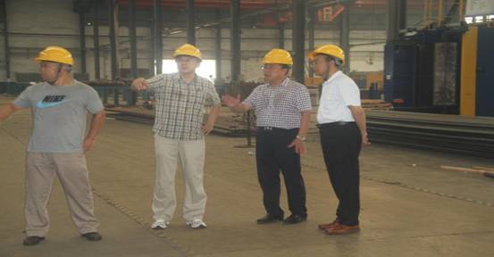 在段董事长陪同下,侯副书记一行顶着烈日,首先来到公司生产部锅炉生产车间,现场考察了锅炉及压力容器产品生产现场;在公司即将开工的万余平米的锅炉汽包重钢车间生产线项目工地,段董事长简要介绍了项目规划情况;在膜式壁、蛇形管生产车间,乔主任、李主任详细了解了膜式壁焊接等技术、工艺、质量操作及管控等情况。参观公司技术研发中心,乔主任等对我公司生产规模、经营态势及成果、技术研发团队规模等交口称赞。