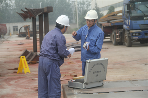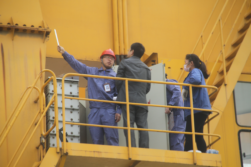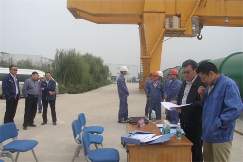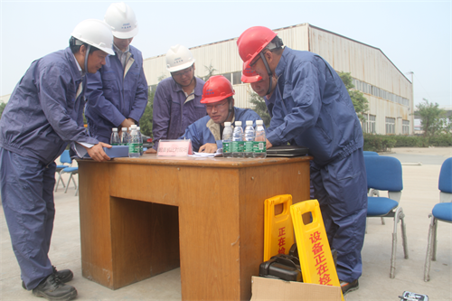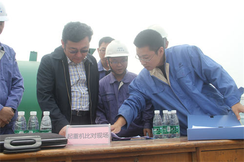 上午9时许,公司西侧厂区两台50吨起重地行前,每台起重机一组,参赛选手携带检测设备仪器,整装开赛。