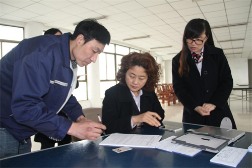 4月7日上午,江苏银行城北支行余峰主任一行5人,携带专业设备,依约早早来到本集团锅炉公司华润工业园区总部,开始对公司员工借记卡激活等业务服务工作。公司副总经理兼财务总监姜红、财务部部长陈颖等接待并对接相关业务。
